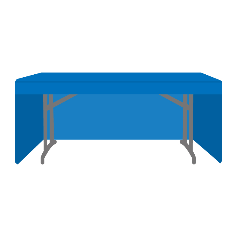 Table Throw – A table throw is otherwise known as your basic, loose-hanging traditional custom rectangle tablecloth with logo.