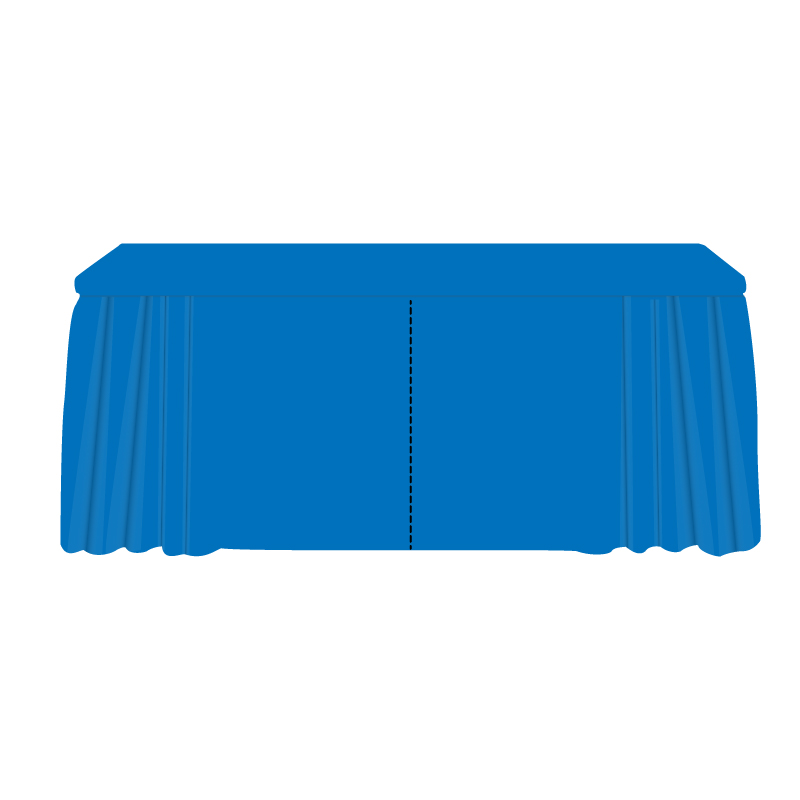Skirts – Table skirts are attached to the outside edge of a table with a velcro clip. Skirts do not cover the top of your table so another piece of fabric or vinyl is recommended.